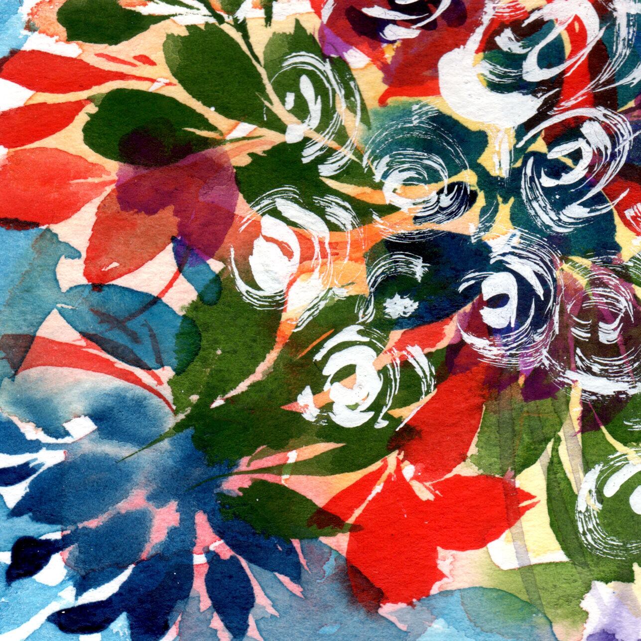 水彩のみでは表現できない、どこか日本を感じさせる色合いを心がけております。